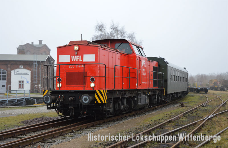 ![]() Wittenberge depot plays host to WFL loco 203 114-4 on January 23, 2018. |