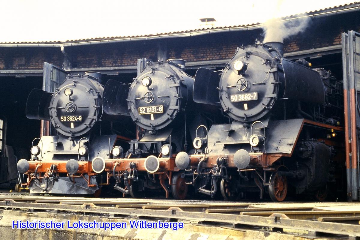 ![]() 30 years of Dampflokfreunde Salzwedel e.V. - Memories On 30 April 2000, three of our exhibits basked in the sun in front of the locomotive shed in Salzwedel. 52 8131 has since left us and belonged to the company WFL Wedler Franz Logistik GmbH, which has since restored the locomotive to working order. The locomotive was sold to the Lausitzer Dampflokclub in 2020. The other two locomotives, 50 3624 and 3682, are still part of the collection in Wittenberge. |