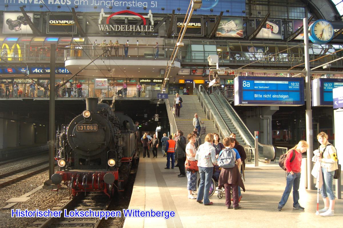 ![]() 30 years of Dampflokfreunde Salzwedel e.V. - Memories On June 8th, 2006, in cooperation with the Verkehrsfreunde Lüneburg working group, we organized a special trip for disabled children from Hamburg main station to Hansapark in Sierksdorf. Train locomotive was 131.060, which was still stationed in Salzwedel at the time. In the photo you can see the locomotive in Hamburg Central Station after the train returned from Sierksdorf. |