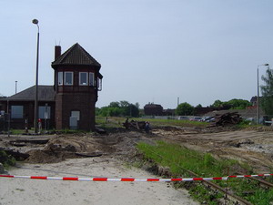 The mechanical signal box Wm, to a Jüdel design, was taken into service in 1909. In the late 1920s, due to extensive additions to the trackwork on the Magdeburg side of Wittenberge station, it became necessary to extend the signal box. The addition was built in a northerly direction, towards the level crossing, and on close inspection, signs of it can still be made out today.