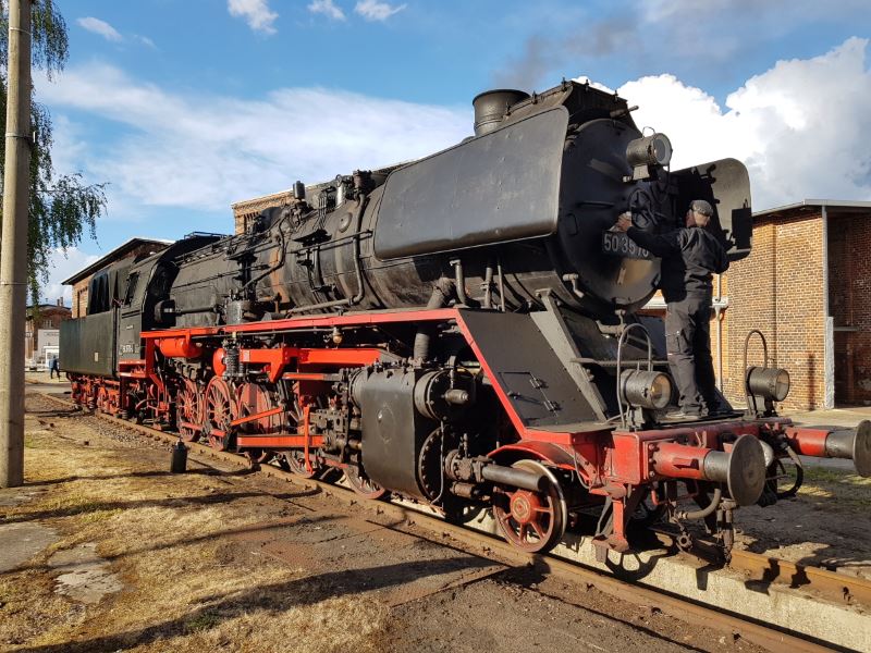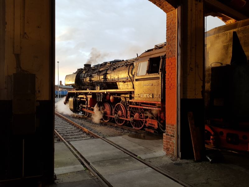 It was also pleasing that 50 3570 was in steam again after the main inspection and was able to take part in various driver's cab rides. Unfortunately, work on the original tender is not yet finished, so that the loco was temporarily coupled with the operational tender of steam loco 50 3682. After some adjustment work on the draw-gear between locomotive and tender this worked really well. The new view probably also pleased the railway photographers, for whom we were able to set up some motives in the superb lighting late on the Saturday afternoon. The photos below were taken in this frame.