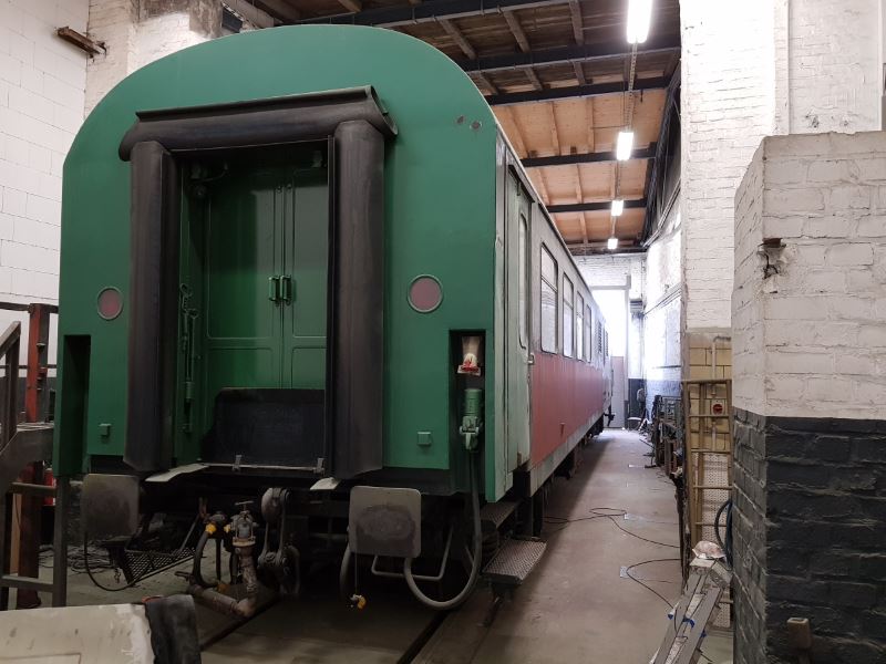 The machine trolley is currently being repainted in our work hall. At the moment it is being reprimed and we hope for rising temperatures in the near future so that we can apply the final coat of paint.