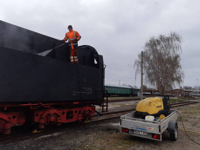 Using a high-pressure cleaner, the tender was cleaned from all sides in order to be able to examine it for previously hidden damage. Fortunately, there were no corresponding findings.