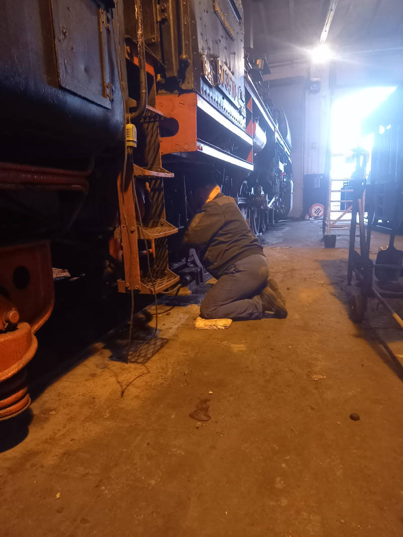 The locomotive also receives a brake overhaul. For this purpose, the brake cylinders were disassembled and the brake pistons examined.