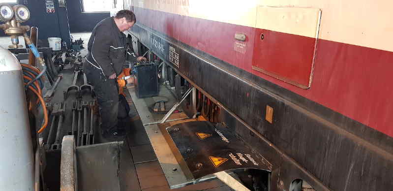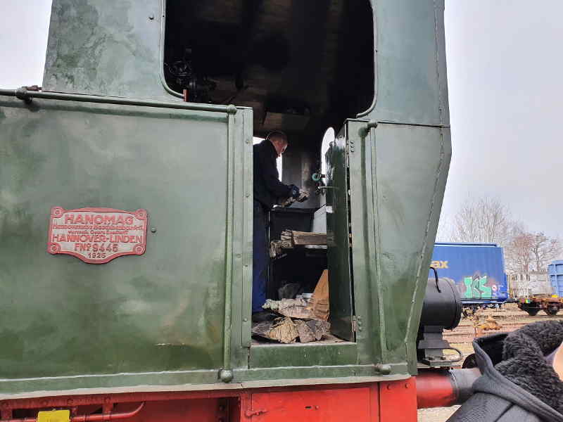 At our diesel locomotive 60022 the compressed air bottles were loaded. They contain compressed air to start the mighty diesel engine, which was running again for the first time this year.
