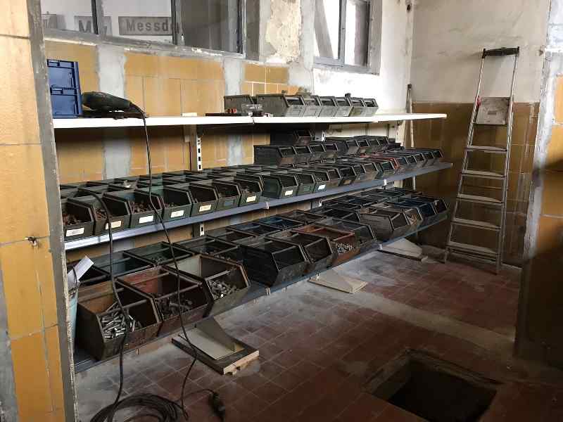 Busy hands were also working in the building. Here our small parts store could be stocked with material. Screws, nuts and gaskets now have an orderly place.