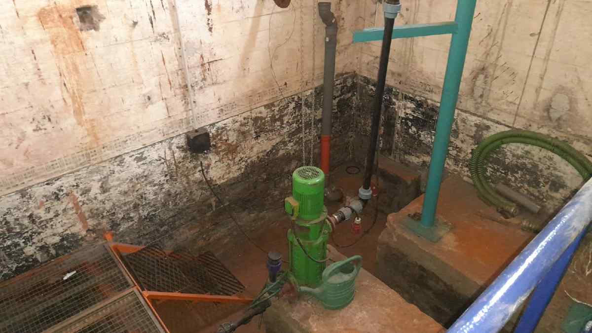 We can see a shaft about four metres deep, with a base area of four by four metres. We have built a new staircase, restored the suction pipe from the well shaft and installed an electric pump.