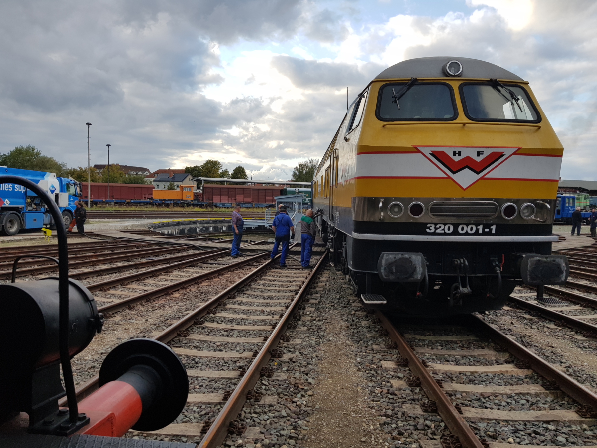 In addition, in the medium term, another locomotive is to be brought back to life, for which the fans have been waiting for a long time. This is 320 001, a large diesel locomotive built by Krauss-Maffei in Munich that was used as a prototype by the German Federal Railroad in the 1960s and 1970s. It was then used by various private railroads in Germany and Italy in freight service. Most recently, it served the H.F. Wiebe in construction train service. It has an output of 3,800 hp from two engines and was formerly capable of 160 km/h, latterly still 120 km/h. It is the largest diesel locomotive ever built in Germany.