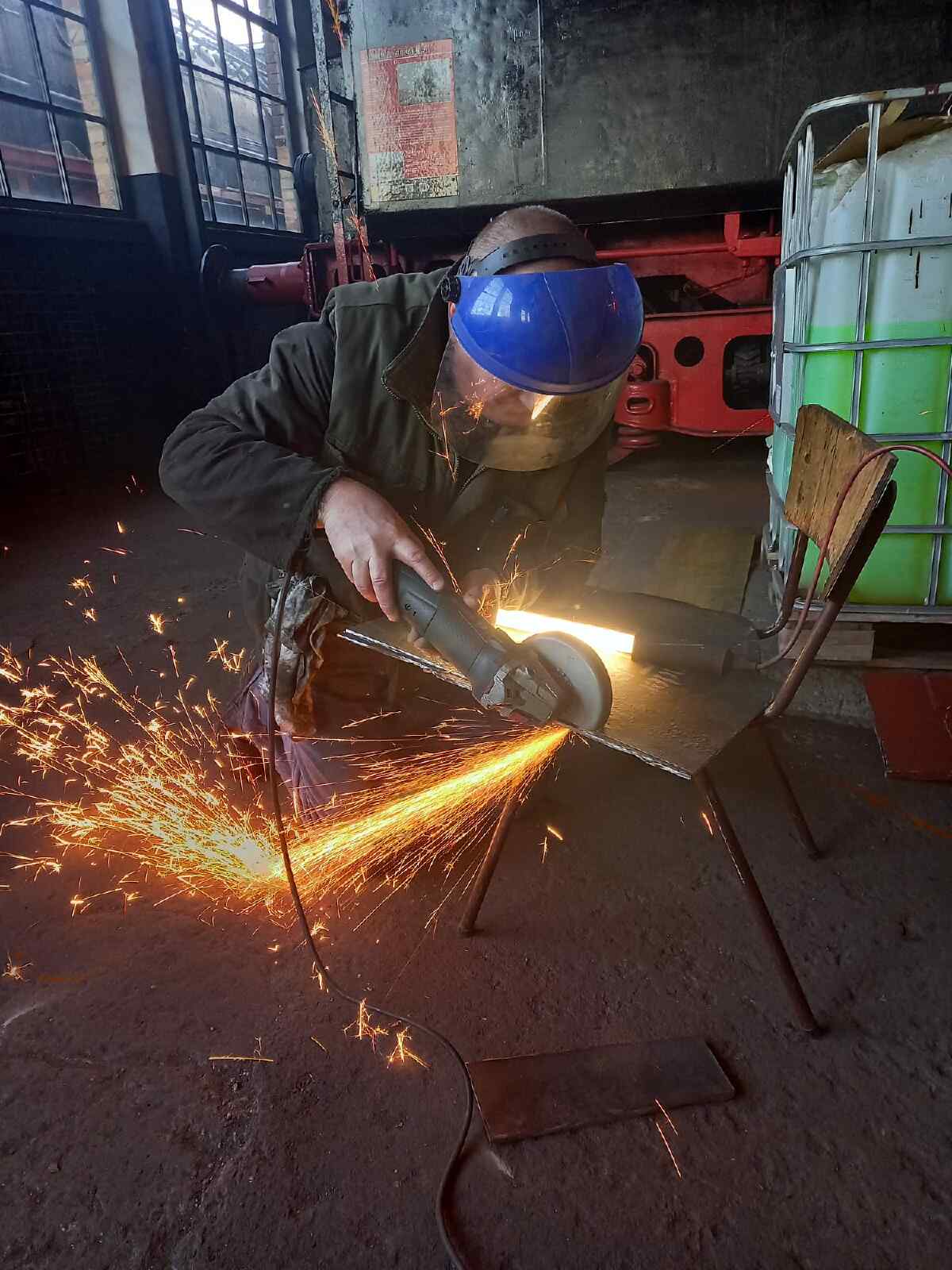 Work also continued on the tender of the 50 3570. Some of the sheet metal on the front end, which often rusts through, was replaced. This is a known weak point on the tenders. We hope that the repair of the vehicle can now finally be completed. While one person prepares the sheet metal, others weld it in.