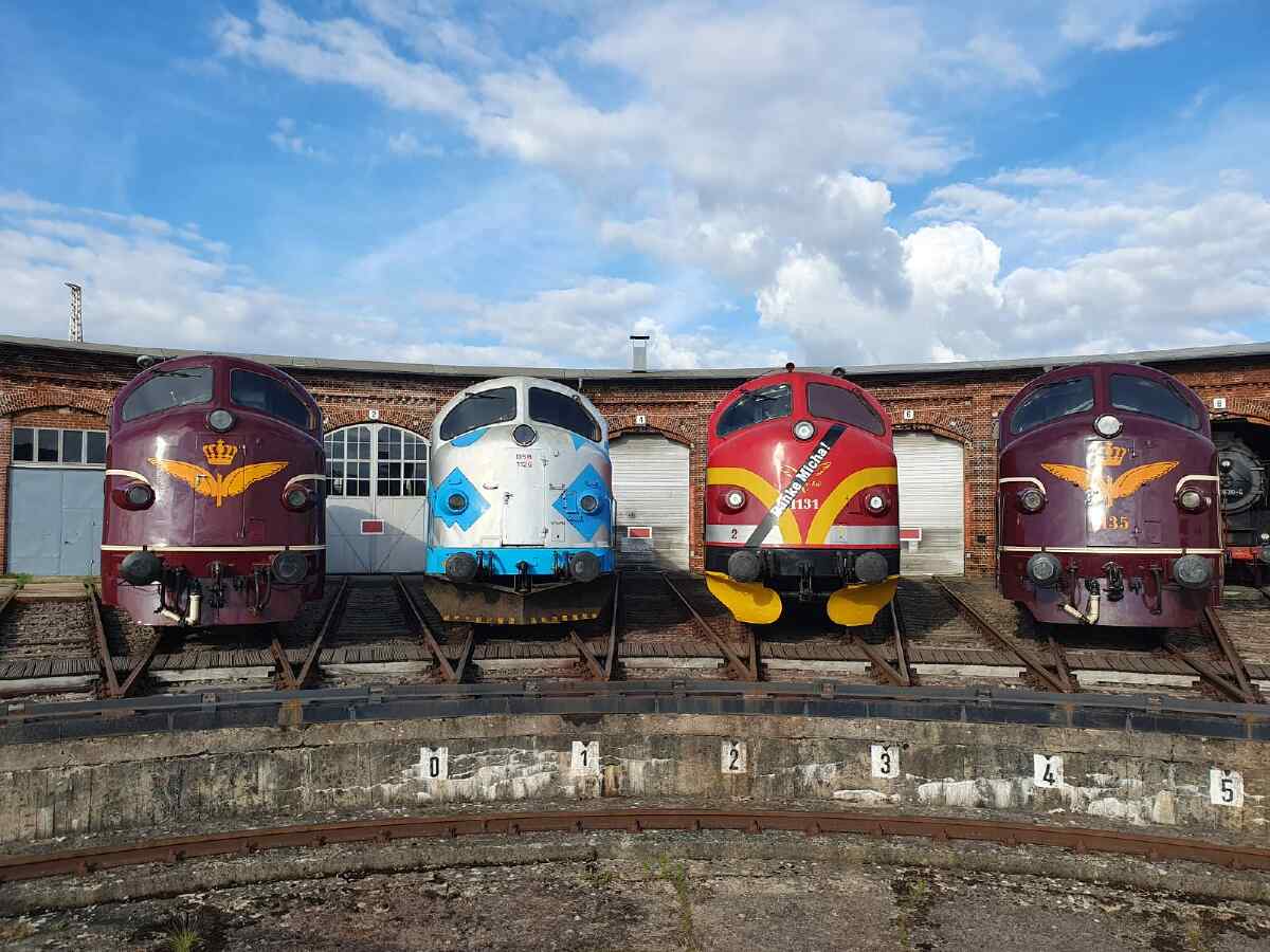 Exhausted but happy, we look back on last weekend, when a total of 10 diesel locomotives from the Swedish manufacturer Nydqvist och Holm AB (abbreviated to NoHAB) gathered at our museum in Wittenberge on the initiative of the NoHAB-GM-Gruppe Deutschland e.V. association and attracted visitors from near and far to the town. There was a double anniversary to celebrate, as the first locomotive of the type on display was built 70 years ago. Some of the impressive diesel giants have also been operating for German companies for 25 years.