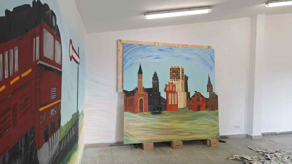 We are delighted to see the finished works of the pupils from the Marie Curie Grammar School in Wittenberge, who - as we reported in our last newsletter - designed the walls of our new exhibition space in the south gable of the engine shed. Thank you again, you have painted some great things.
