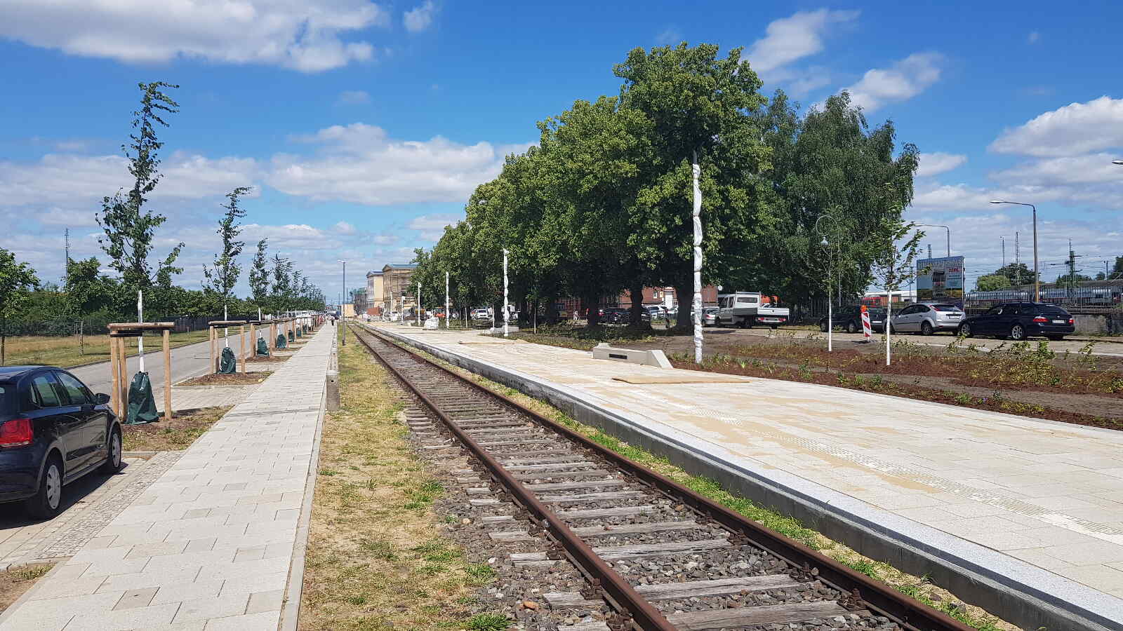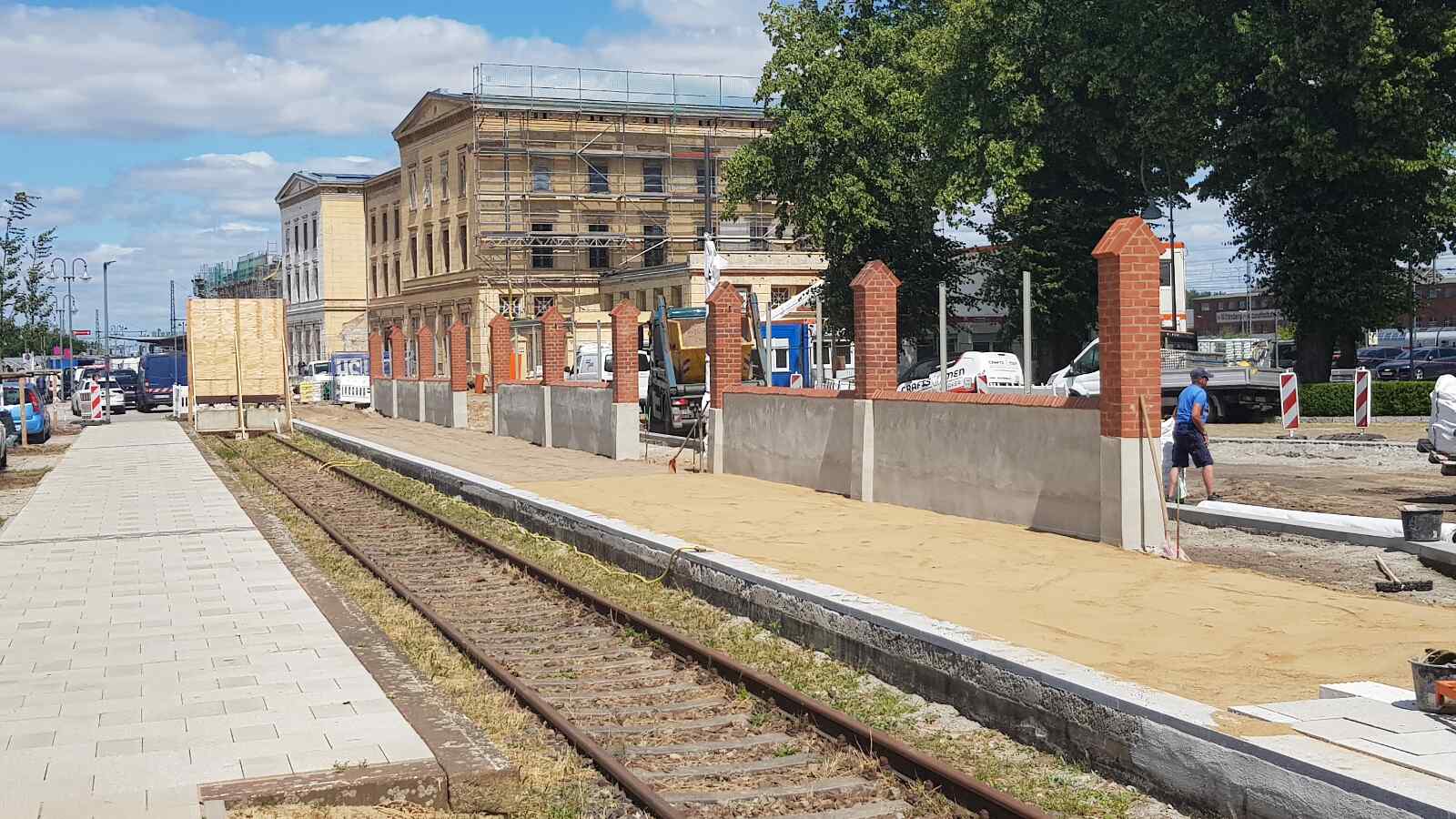 As part of the redesign of the green spaces and in preparation for the State Garden Show, which will be organised in Wittenberge in the summer of 2027, the platform next to this track has been redesigned. In future, it will be integrated into the green space that is being created along the street "Am Bahnhof". We are very pleased about this, as it will also make our guests' journey from the station more pleasant when they arrive by train from early summer 2026.