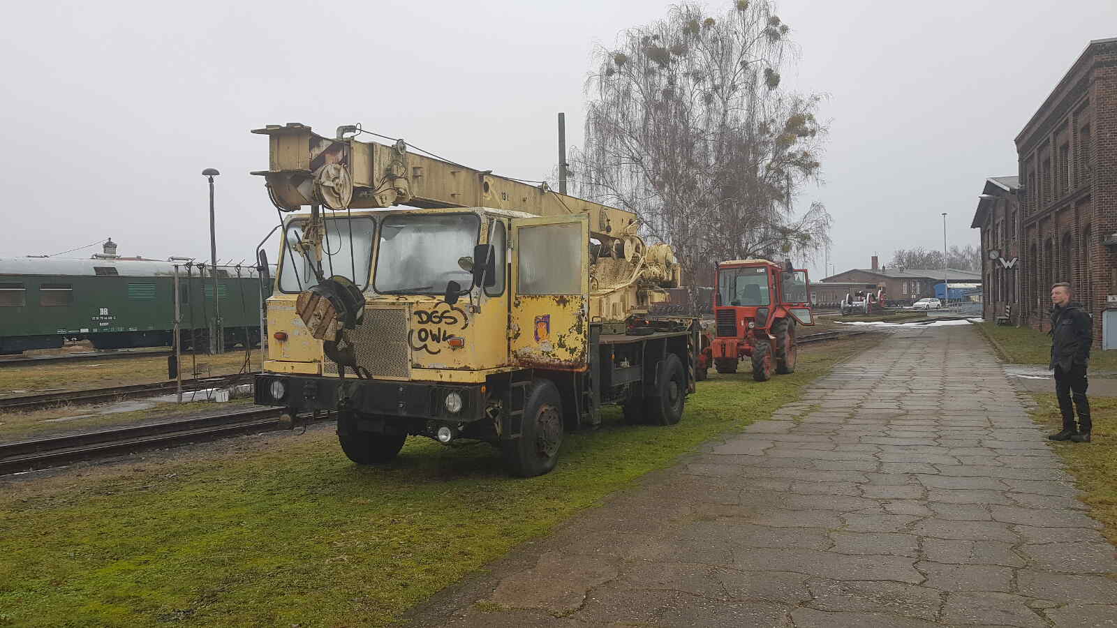 Like you probably, we were in the icy grip of winter. Unfortunately, it's not possible to get much work done unless you can find a heated room. Fortunately, although our locomotive shed is not frost-free, at least it is draught-free when the doors and gates are closed. So we have literally moved our work indoors. One major project at the moment is the refurbishment of a mobile crane, which we recently received on permanent loan. It has spent the last few weeks outside, but has now been hauled into our workshop. The clutch and brakes need to be replaced and a crane inspection prepared. When the temperatures rise again, it will also be repainted.
