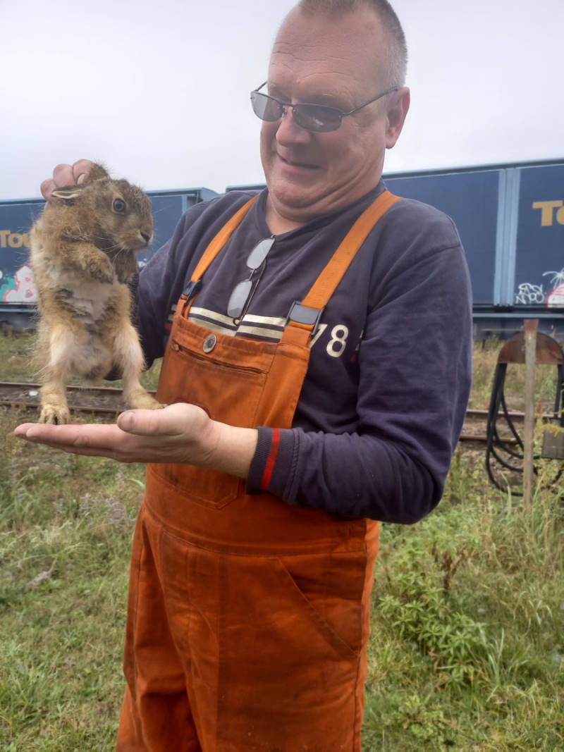 But let's take it one step at a time: On the Friday before the event, we noticed that a small hare had fallen into the turntable pit and could not get out under its own power. So we held a hare hunt, caught the little guy and released him. He is doing well again.
