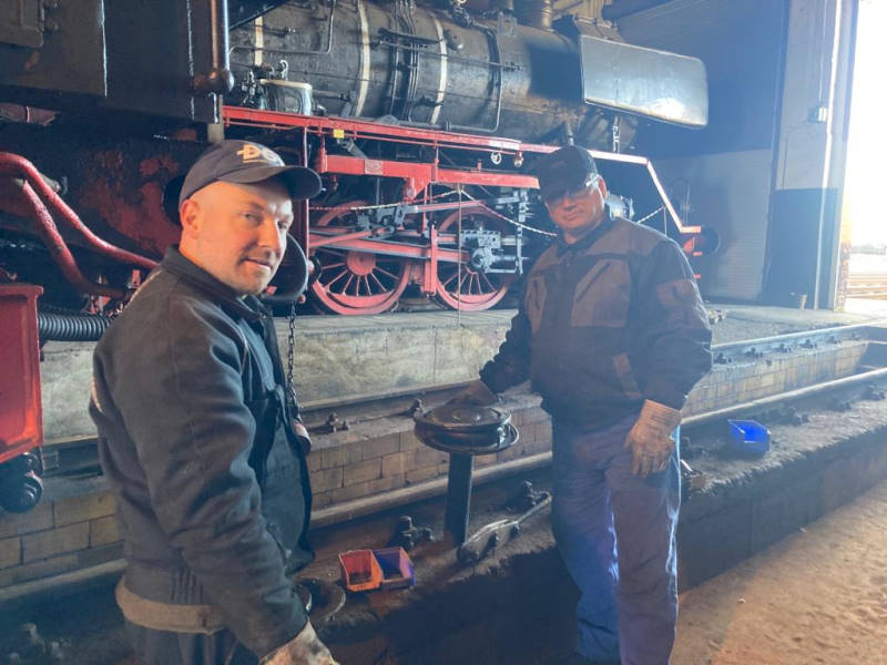 After our autumn festival a fortnight ago, we now have to do some maintenance and repair work to get our exhibits through the winter. First we turned our attention to steam locomotive 50 3570. During the last operations, some bars in the firebox had warped and had to be replaced with new ones. This is a job where one must not be afraid of dirt. Afterwards a shower is definitely worth it.