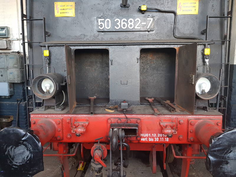 After this locomotive was under steam, it was coupled to 01 509 and the heating lines of the two locomotives were connected. On the following picture you can see the heating line under the buffers between the two locomotives