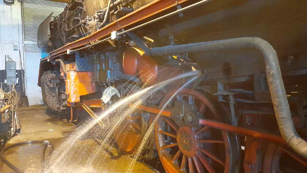 What else happened this weekend? After the end of the season, our operational vehicles have to be put into hibernation. Therefore, the boiler of the 50 3570 was washed out on Saturday. This means that the residues left behind in the boiler when the water evaporated are washed out with a sharp jet of water.