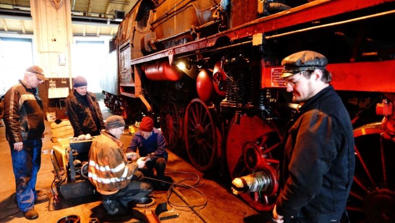 Wenn es um die Aufarbeitung der Trieb- und Kupplungsstangen geht, werden viele starke Hände und Arme gebraucht. (Foto: Ronald Ufer)
