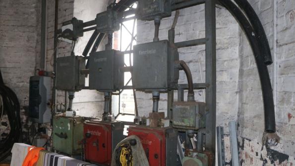 Blick auf die Schaltkästen im Wasserturm. Die Technik stammt noch aus DDR-Zeiten.