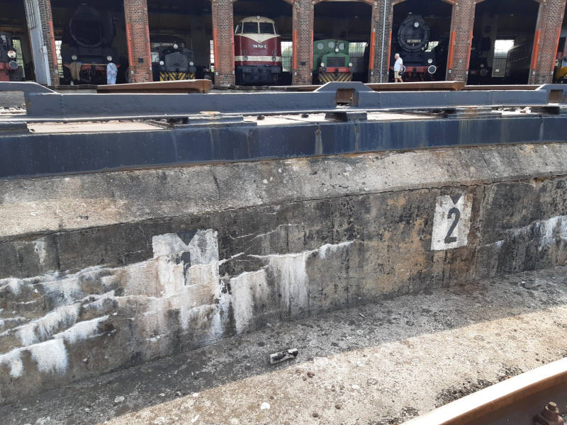 A colleague preferred to enjoy the nice weather outside the locomotive shed. He took pity on the track markings that had been placed in the turntable pit. These had become somewhat weathered over the last few years. The turntable operator can orientate himself by these markings.