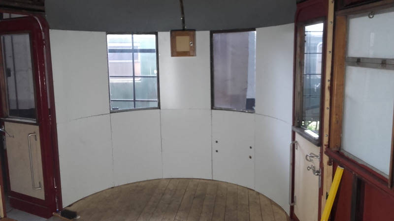 It is also worth mentioning that the refurbishment of our sidecar 197 805 is making noticeable progress. Now that the windows have been replaced, the new interior panelling can be fitted and installed. Here are two pictures of the progress: