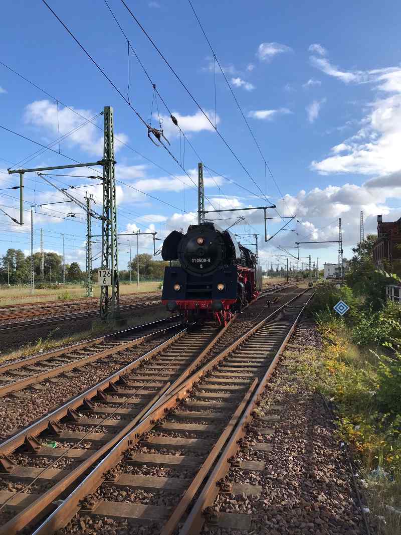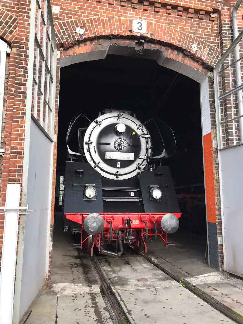 We are very pleased to announce that express steam locomotive 01 0509-8 has reached us today. The express steam locomotive was built in 1935 by Krupp and underwent extensive reconstruction in 1963 at the Reichsbahnausbesserungswerk Meiningen. It was already at home in Wittenberge between 1968 and 1976 and was one of the stars of the depot and of the entire Deutsche Reichsbahn at that time, along with its sister locomotives. It was one of the most powerful steam locomotives ever to run on German rails. Among other things, it hauled the interzonal trains between Hamburg and Berlin and was thus used in very high-quality passenger service. Today, it belongs to the Pressnitztalbahn, which uses it regularly to haul special trains throughout Germany.
