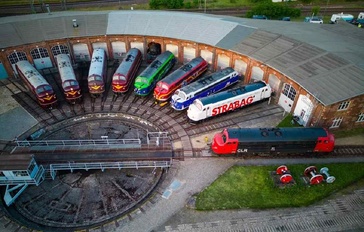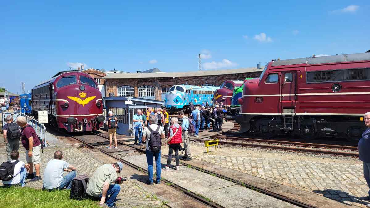 Exhausted but happy, we look back on last weekend, when a total of 10 diesel locomotives from the Swedish manufacturer Nydqvist och Holm AB (abbreviated to NoHAB) gathered at our museum in Wittenberge on the initiative of the NoHAB-GM-Gruppe Deutschland e.V. association and attracted visitors from near and far to the town. There was a double anniversary to celebrate, as the first locomotive of the type on display was built 70 years ago. Some of the impressive diesel giants have also been operating for German companies for 25 years.