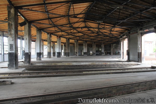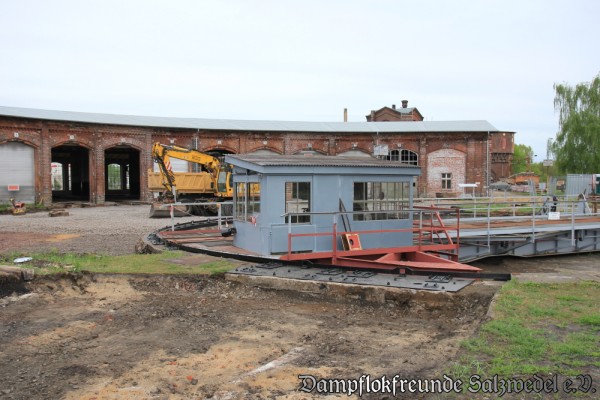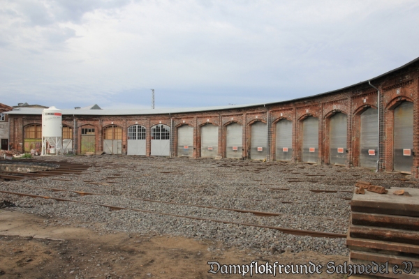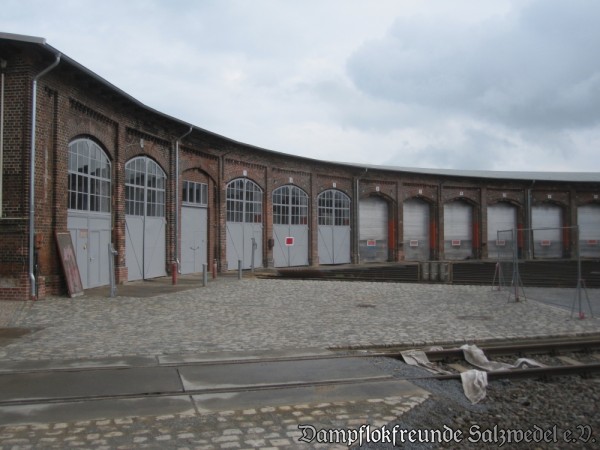 Witterungsbedingt mussten die Bauarbeiten am und im Bw Wittenberge von Anfang Januar bis Mitte Februar ruhen. Eis und Schnee machten insbesondere weitere Dacharbeiten unmöglich. Inzwischen sind die Handwerker aber wieder aktiv und so sind seit einer Woche wieder Fortschritte zu erkennen: