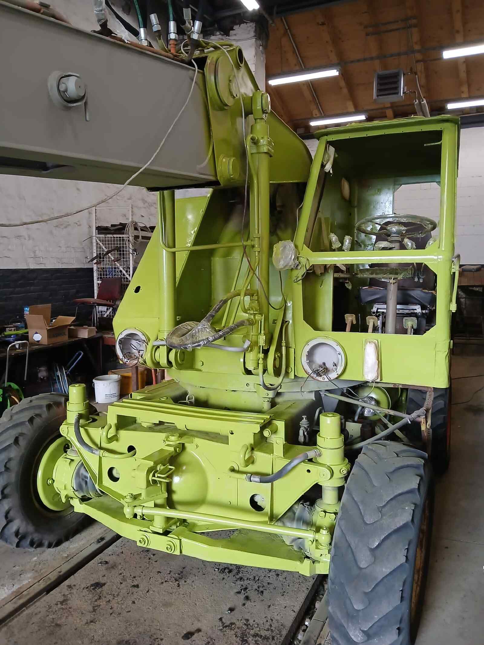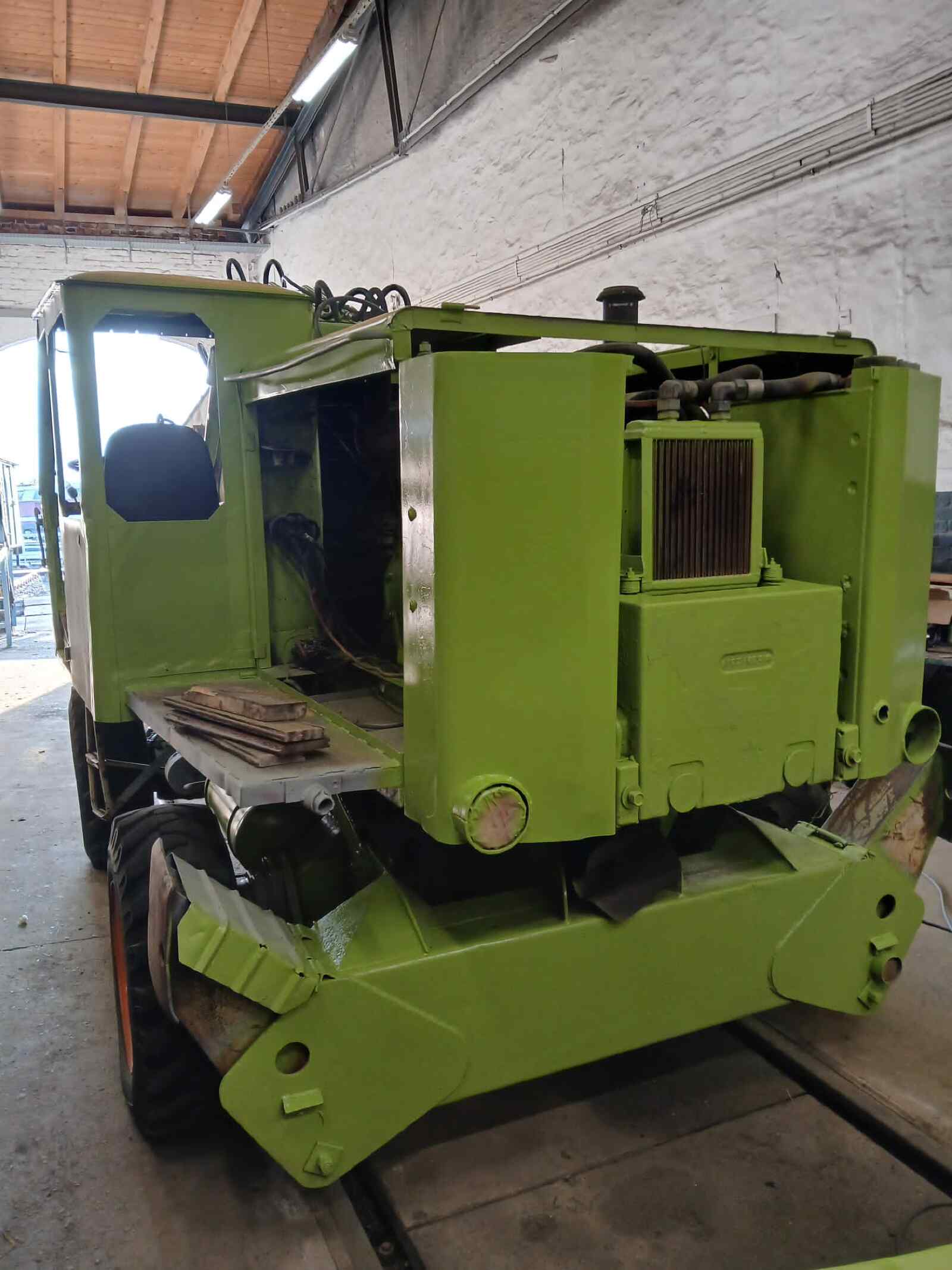 Fortunately, our T174 excavator is also making progress. Now that all work on its interior and bodywork has been completed, it is currently being painted in the typical green colour that some of you may remember from the GDR era. Now the new or reconditioned windows and lamps have to be installed. Finally, it will be labelled and will then hopefully be available to us again for a long time for work in the museum.
