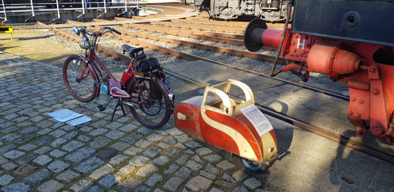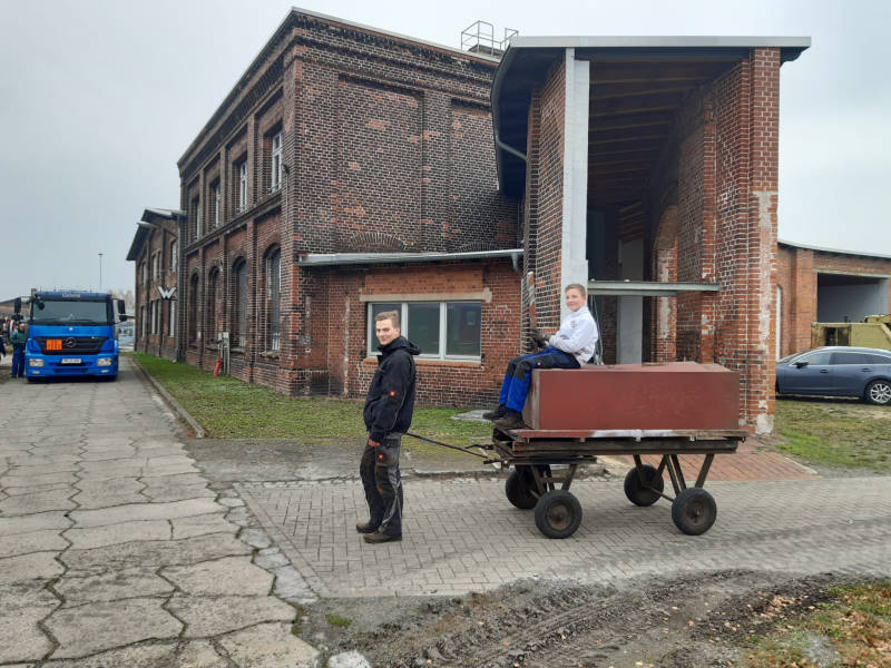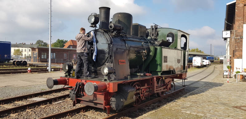 One of the two operable class V23 diesel locomotives was taken to the workshop to be thoroughly cleaned. The locomotive has so far the number 2 of the Stendal pulp mill and a blue livery. It will soon be painted orange and bear the number 102 076. This is a reminder of the use of an identical locomotive with this number at the Wittenberge depot in the days of the Deutsche Reichsbahn. The locomotive is to be used in future together with the VB 197 805 sidecar, which will soon be operational again. This combination of such sidecars and locomotives used to be typical for the branch lines in the Prignitz and the neighbouring Altmark.