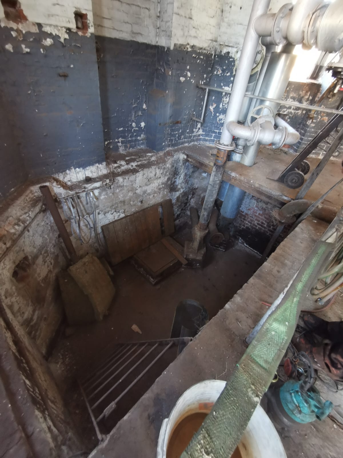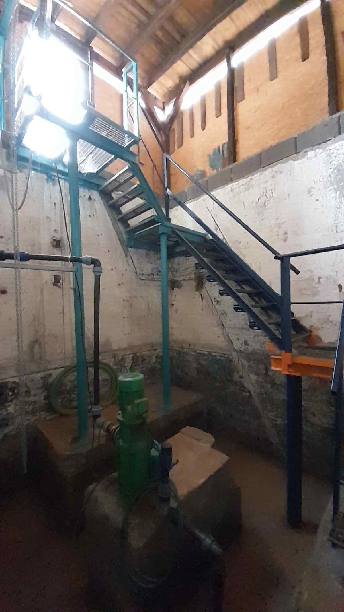 We can see a shaft about four metres deep, with a base area of four by four metres. We have built a new staircase, restored the suction pipe from the well shaft and installed an electric pump.