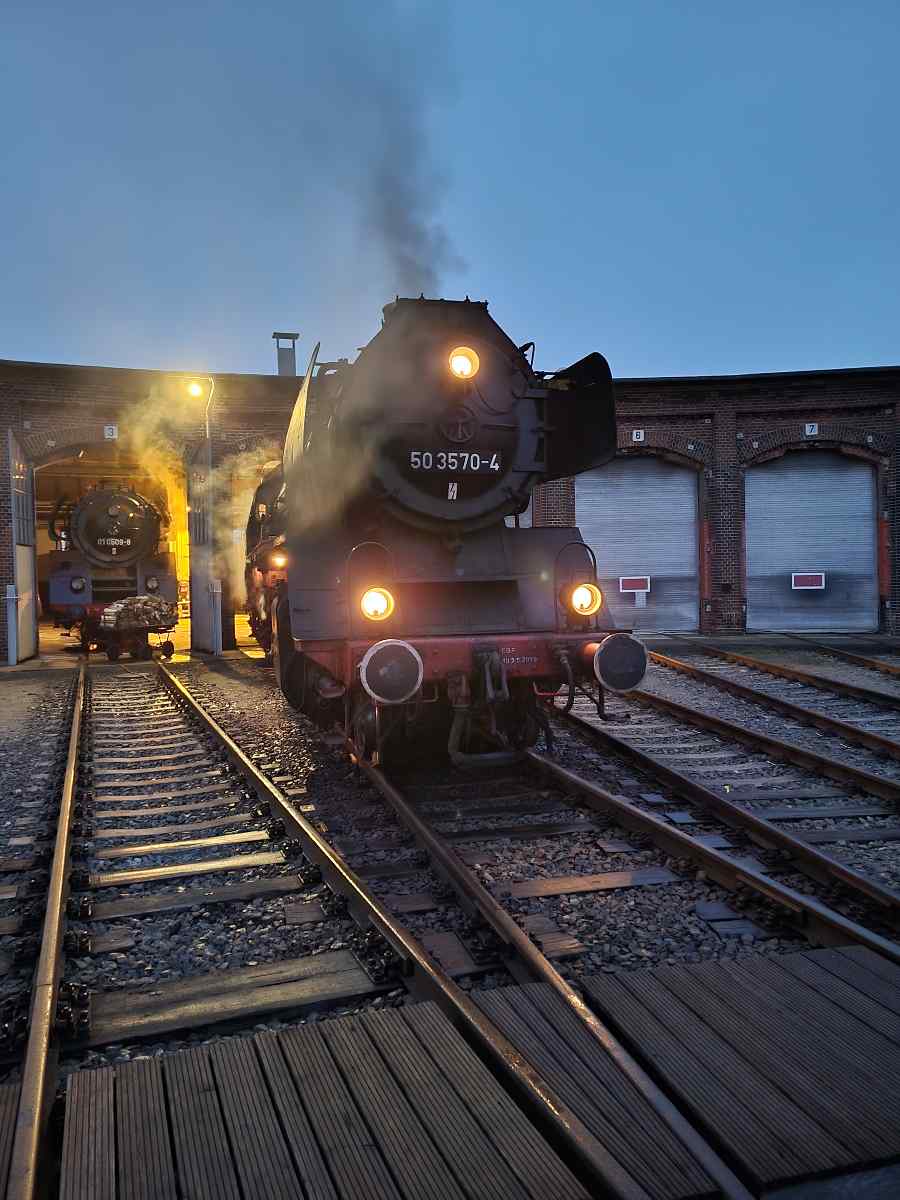 So, early Wednesday morning, the coal-fired steam locomotive 50 3570 was fired up first.