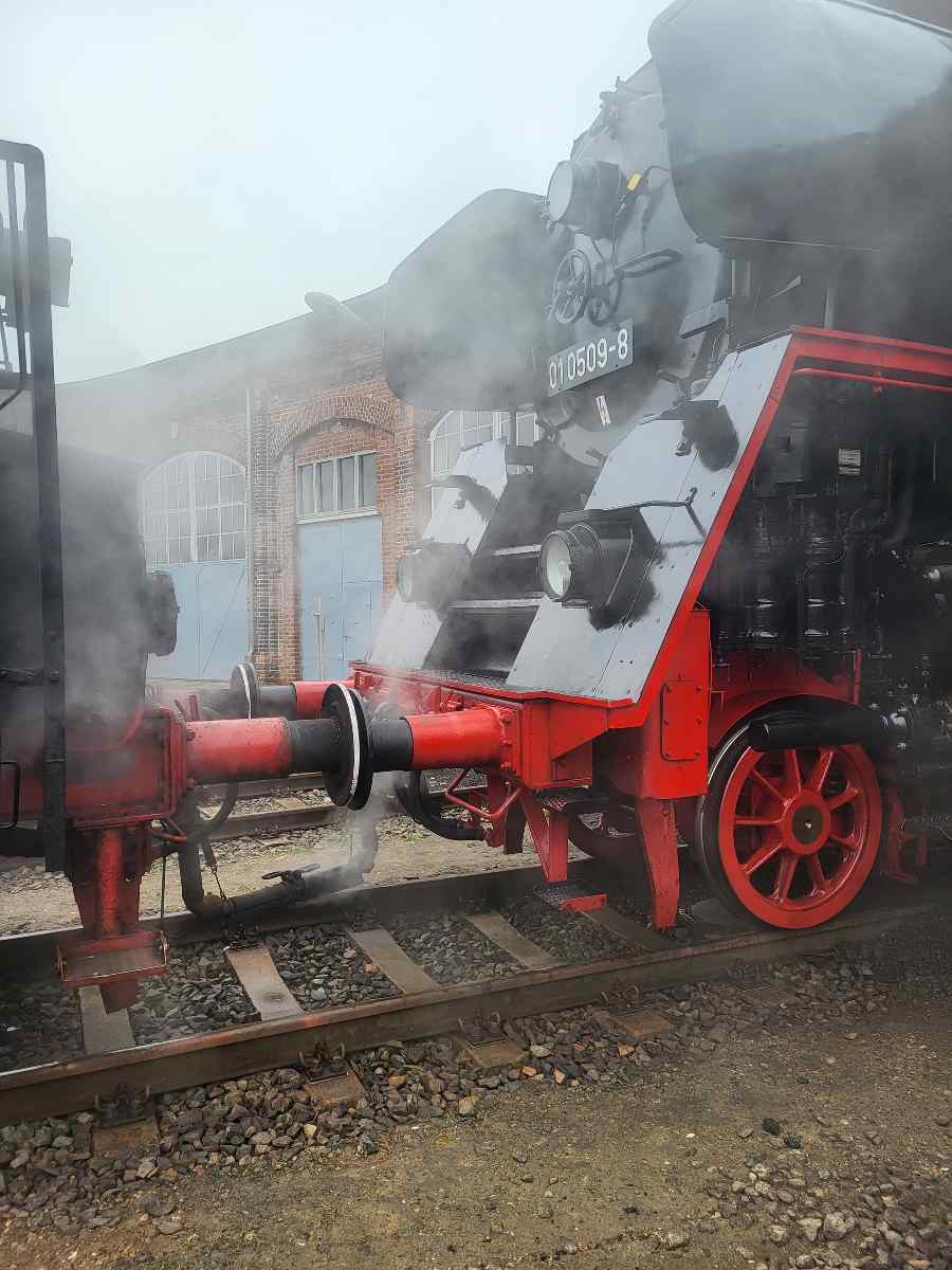 Last week, steam locomotive 01 509 had to be fired up, because it was supposed to haul a speial train from Plauen to Wernigerode on Saturday. This, as some may know, is not so easy. In order to put the oilfired locomotive into operaion, a steam donor is needed, this time in the form of our steam locomotive 50 3570.