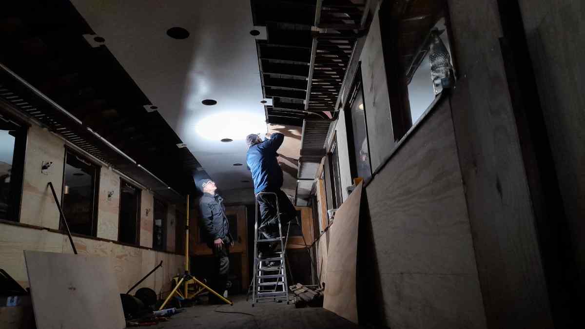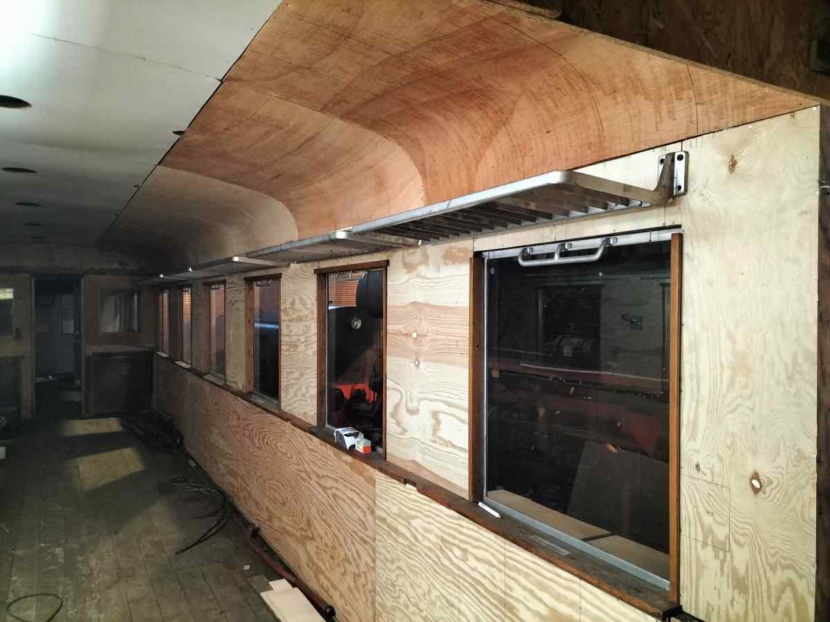 The interior work on our car 190 805 progressed with clearly visible steps. Here, the new plywood ceiling paneling could be installed.