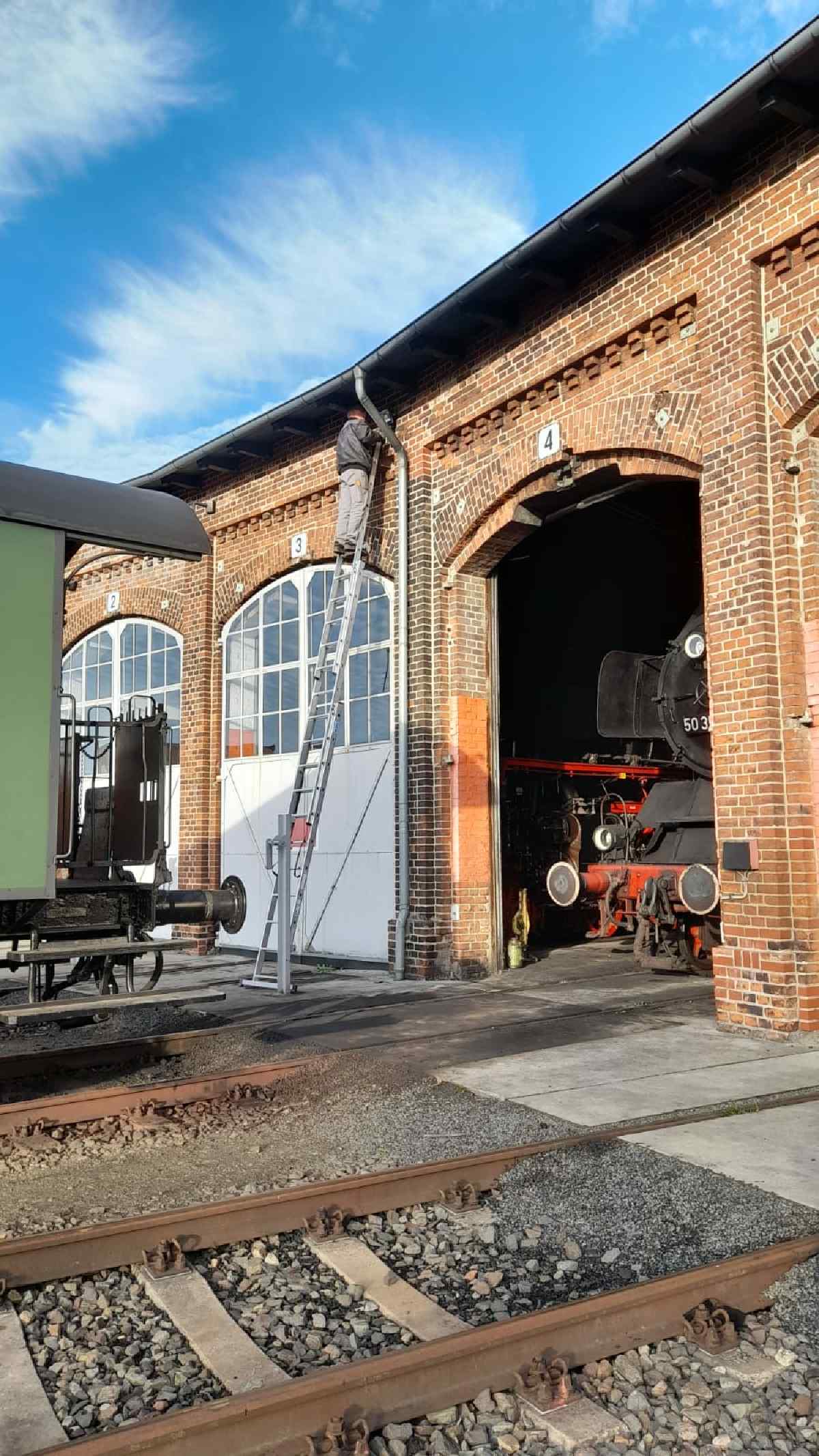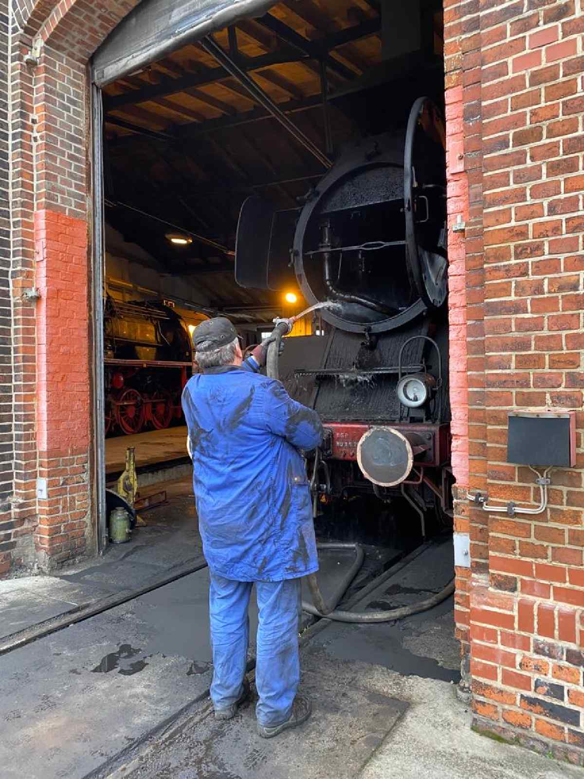 What else happened this weekend? After the end of the season, our operational vehicles have to be put into hibernation. Therefore, the boiler of the 50 3570 was washed out on Saturday. This means that the residues left behind in the boiler when the water evaporated are washed out with a sharp jet of water.