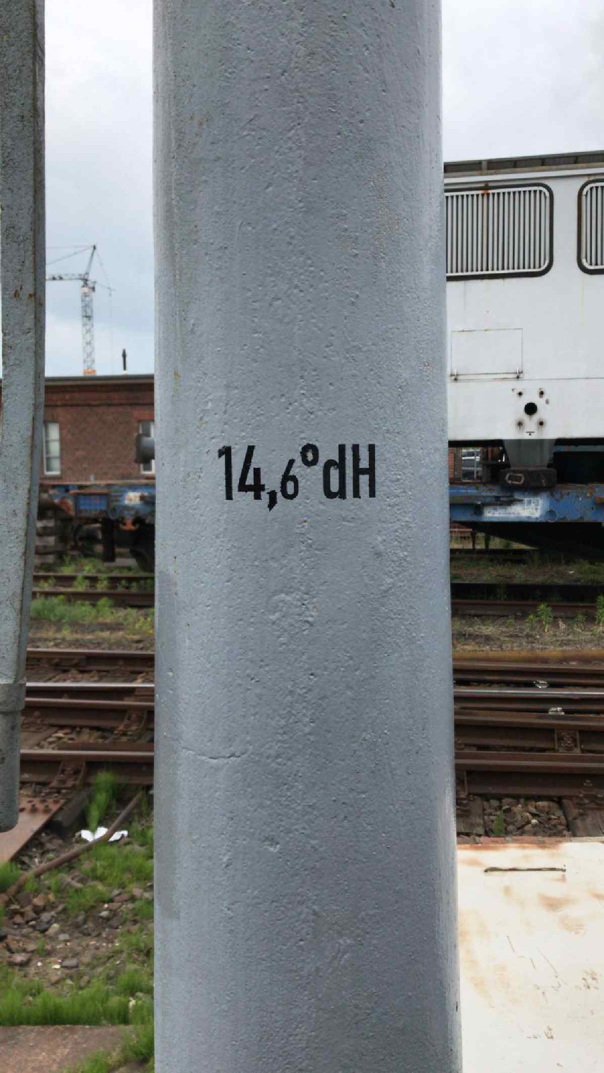 The deposits are mainly limescale, as you know it in miniature from your kettle or washing machine. To prevent the limescale from settling firmly on the surfaces, you might use limescale remover in the form of tablets at home. We use soda ash for this, which is added to the water in the tender in powder form and dissolves there. From there it gets into the boiler when the locomotive is running and there it binds with the lime from the water to form sludge, which settles at the bottom of the boiler. Since soda ash foams quite a bit and this is undesirable when operating the locomotive, a so-called foam brake is also added to the water. Locomotive crews can see how much soda has to be added by looking at the water cranes. It should be written there how hard, i.e. how calcareous the water is. Corresponding tables provide information on how much soda must be added for which water hardness.