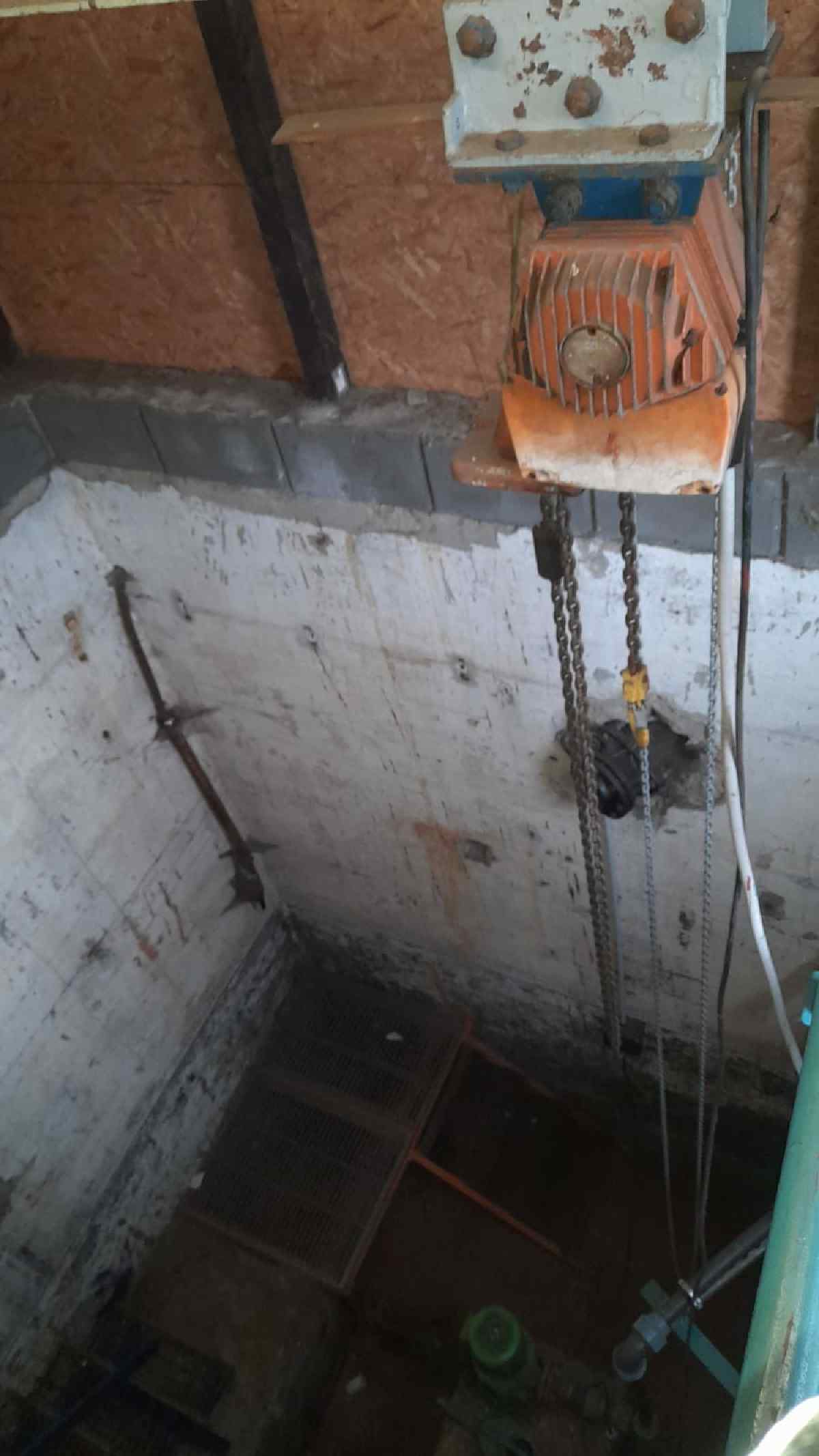 We also installed an electric chain hoist, which makes it much easier for us to change the pump.