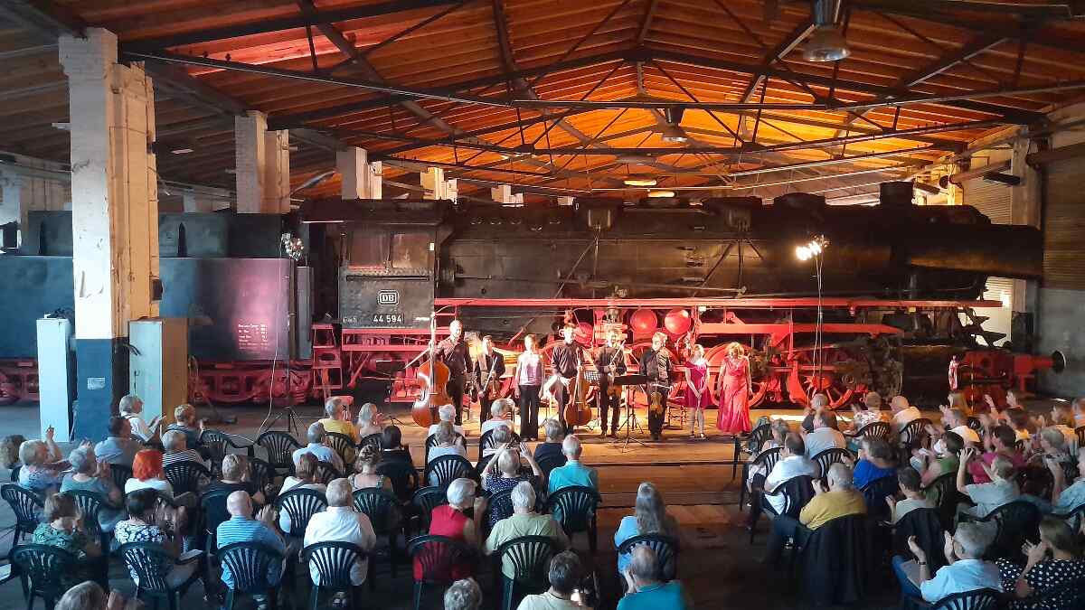 Am 9.9. abends fand dann ein klassisches Konzert im Lokschuppen vor historischer Kulisse statt. Das Quartett und wir freuten uns über mehr als 150 Kulturbegeisterte, die im Lokschuppen den Klängen von Bach, Mendelsohn und Co. lauschten. Tolle Atmosphäre! Schön, dass immer mehr Leute auch solch ein Angebot wahrnehmen.