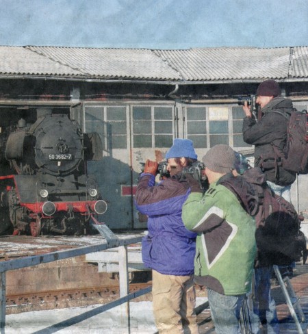 von Uta ElsteDer Salzwedeler Lokschuppen war am Wochenende Ziel von 32 Eisenbahnenthusiasten. Ausgestattet mit üppiger Fototechnik nutzten sie eine letzte Chance, Eisenbahngeschichte im Bild festzuhalten.