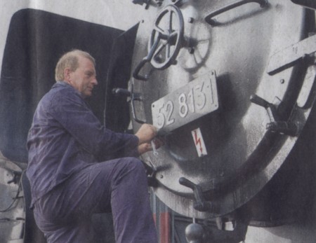 Reinald Franz versah die einst von Salzwedel nach Nossen verkaufte Lok mit einem neuen Schild.